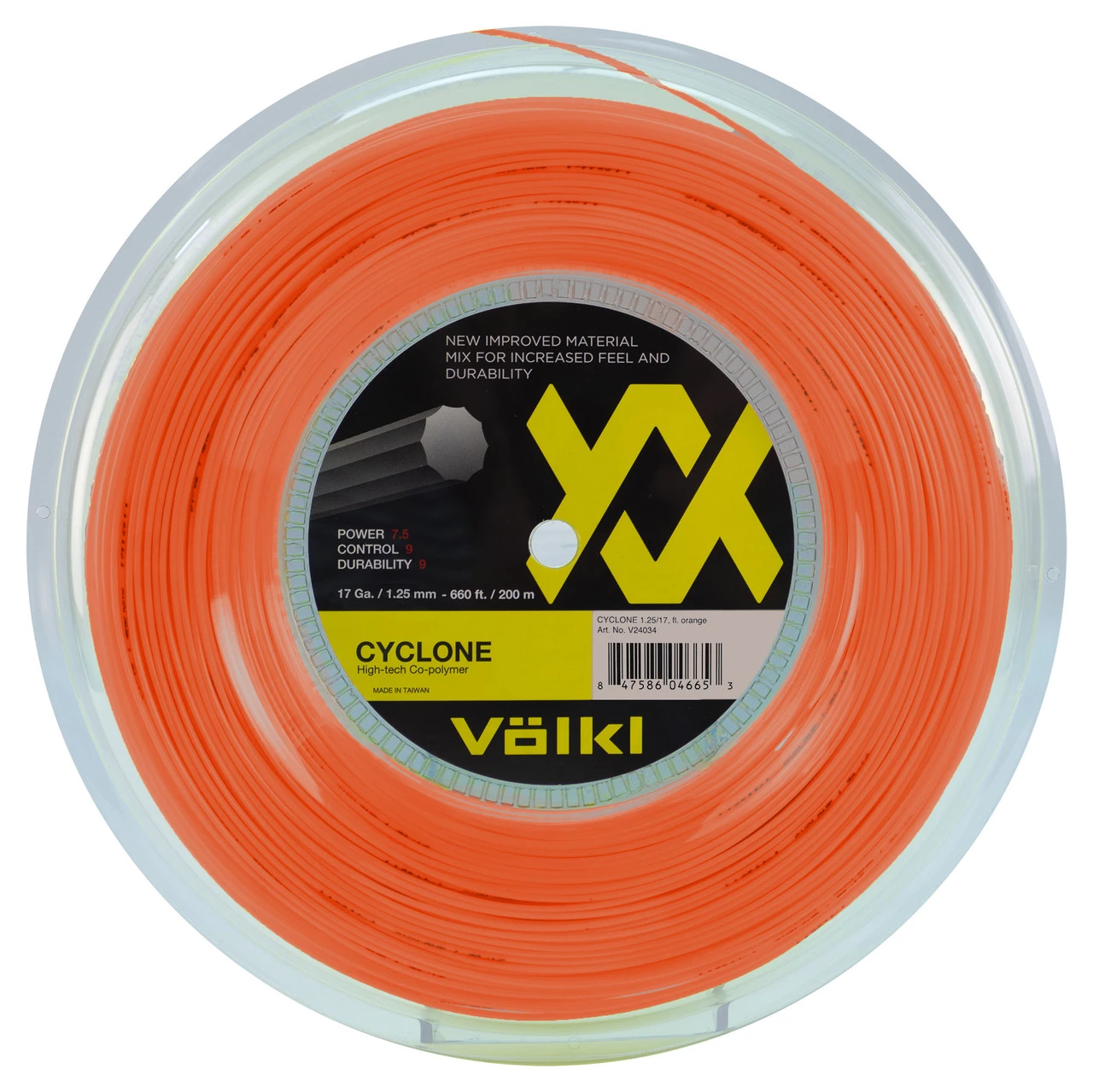 Volkl Cyclone is a gear shaped string which enhances spin but does not compromise ball speed, control and durability. This is a high quality co-polymer string. Great value and good choice for those who like to hit heavy spin.